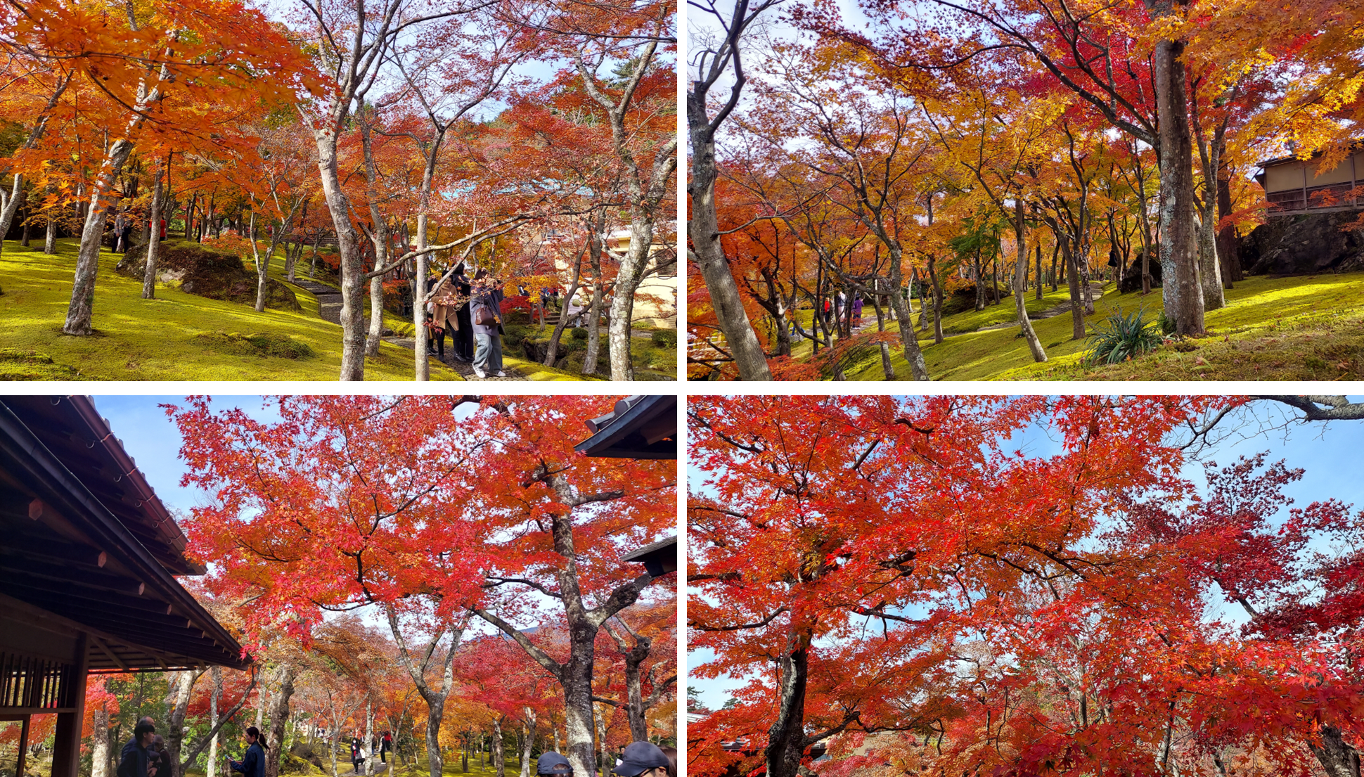 家を早めに出て10時前に到着、チケット売り場は10人ほどの行列でさほど待つことなく入場できました。ここは2020年、2021年、と来ていますので3回目の訪問になります。入ってすぐの庭園(神仙郷)はかなりの人でしたが、ちょうど見ごろの美しい紅葉が一面に広がっていました。地面は緑の苔に覆われており、紅葉がますます映えるよう設計されています。