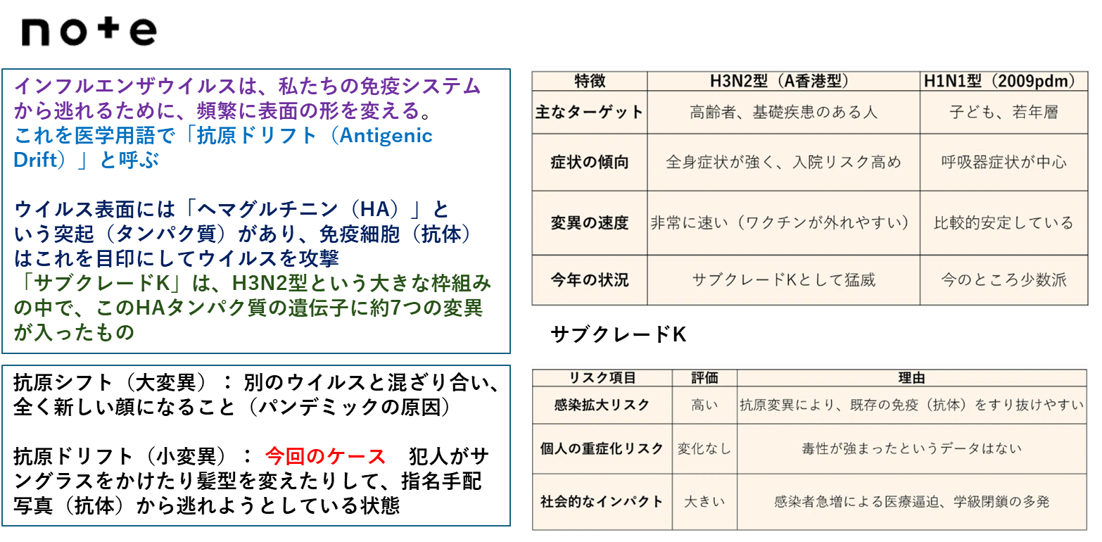 先週土曜日にご紹介したようにインフルエンザが大流行中です。そしてそのウイルスがサブクレードKが主体であると報じられました。今日はそのサブクレードKについて調べたことをご紹介します。
