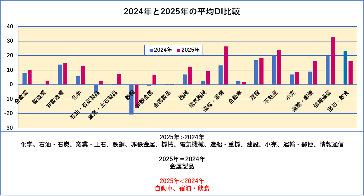 最後に2024年(3月調査~12月調査)と2025年(3月調査~12月調査)のDI平均値比較図を示します。