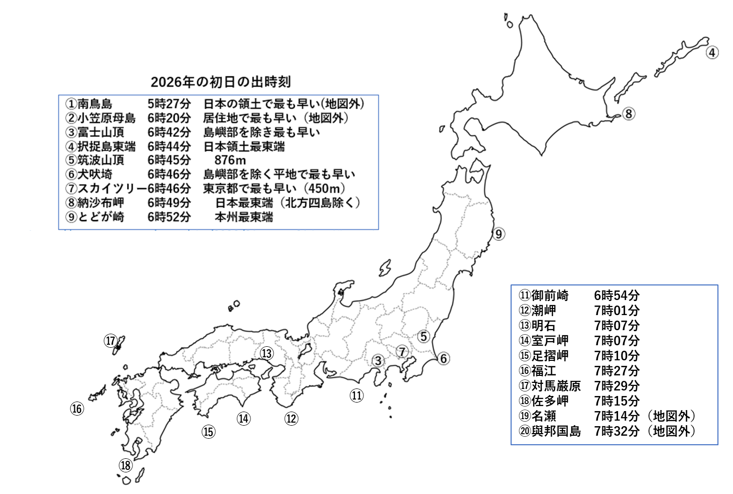 国立天文台 初日の出情報(2026年1月) | 国立天文台(NAOJ)