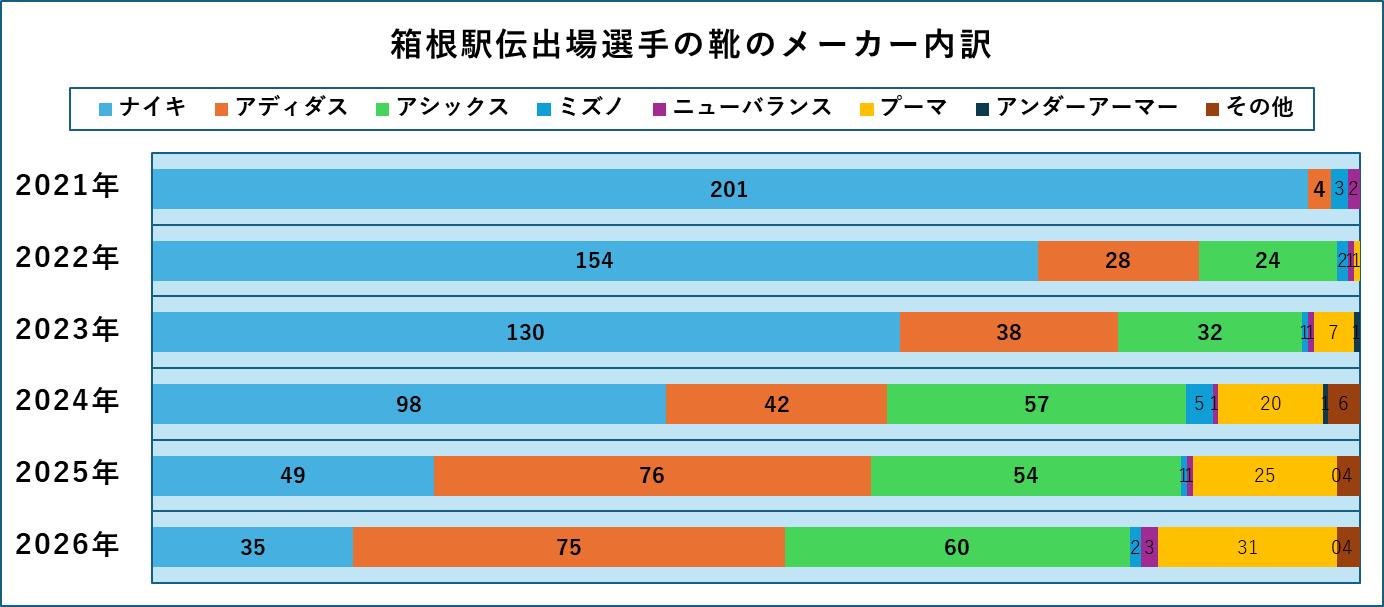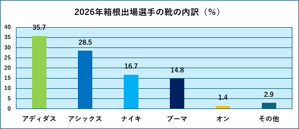 2026年の出場210選手の靴のシェアは下図のようになりました。