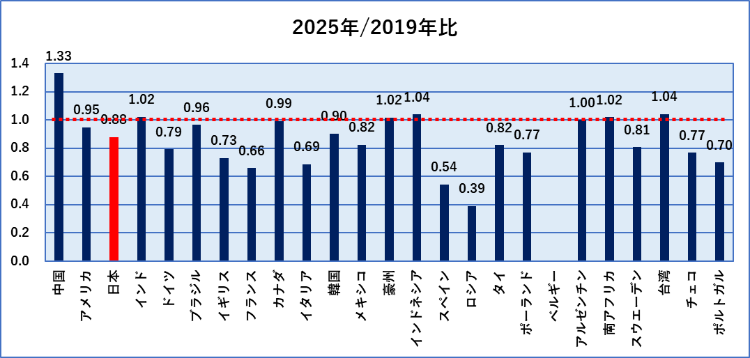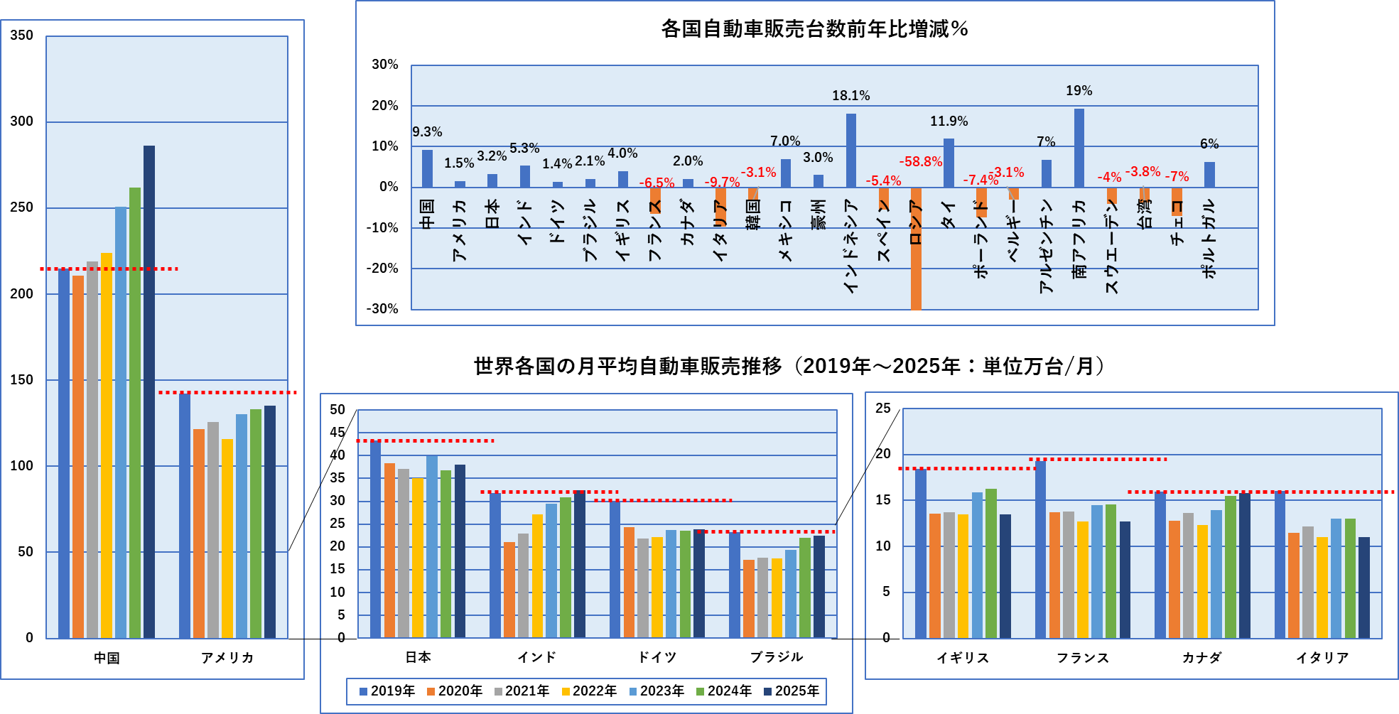 2025年の世界の自動車販売台数・・欧州以外は概ね増加