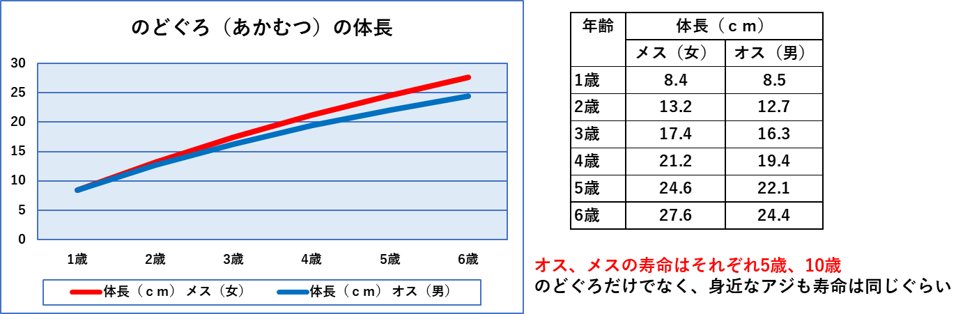 「のどぐろ」は、雌の方が雄よりも大きく、かつ寿命が長いのです。つまり30センチを超えるような「大きなのどぐろ」はすべて、雌であるということです。雌がいなければ産卵されないので養殖はなりたたないことに加えて、同じ大きさまで成長する時間も雌の方が短いのです。雄が多いことは養殖の事業化には大きなマイナス要素になるからです。