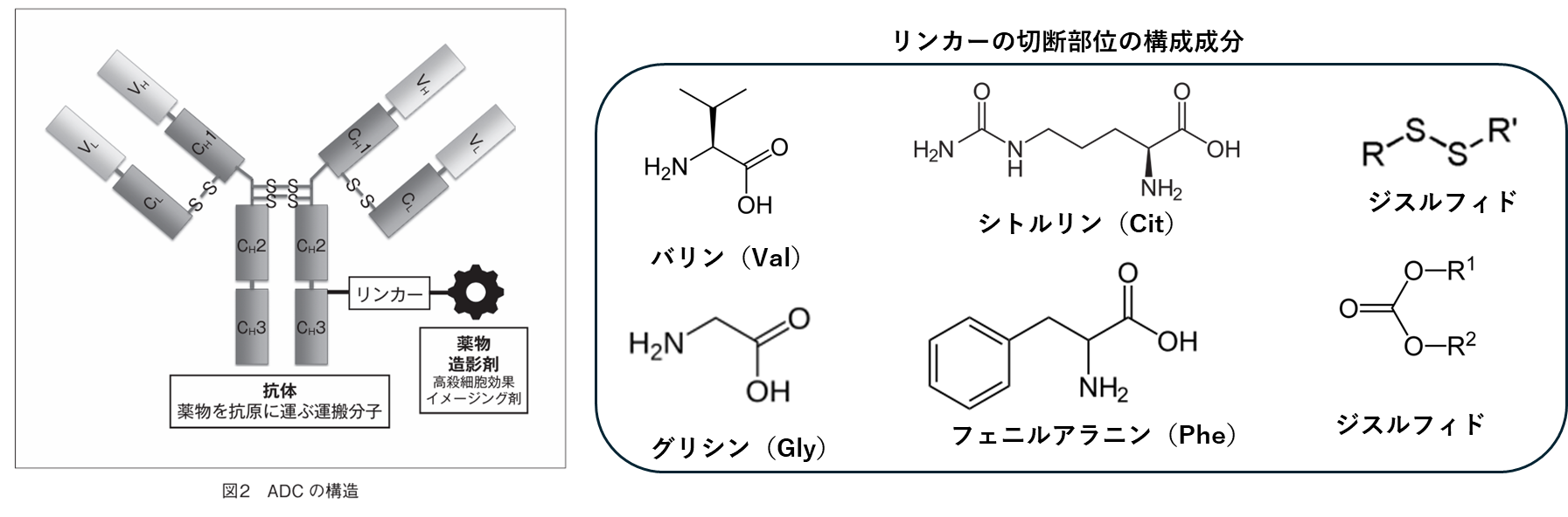 切断部位が意外に抗体から遠い場所にあることに驚きましたが、構造をみただけでなんとなくADCのイメージがわかりました。