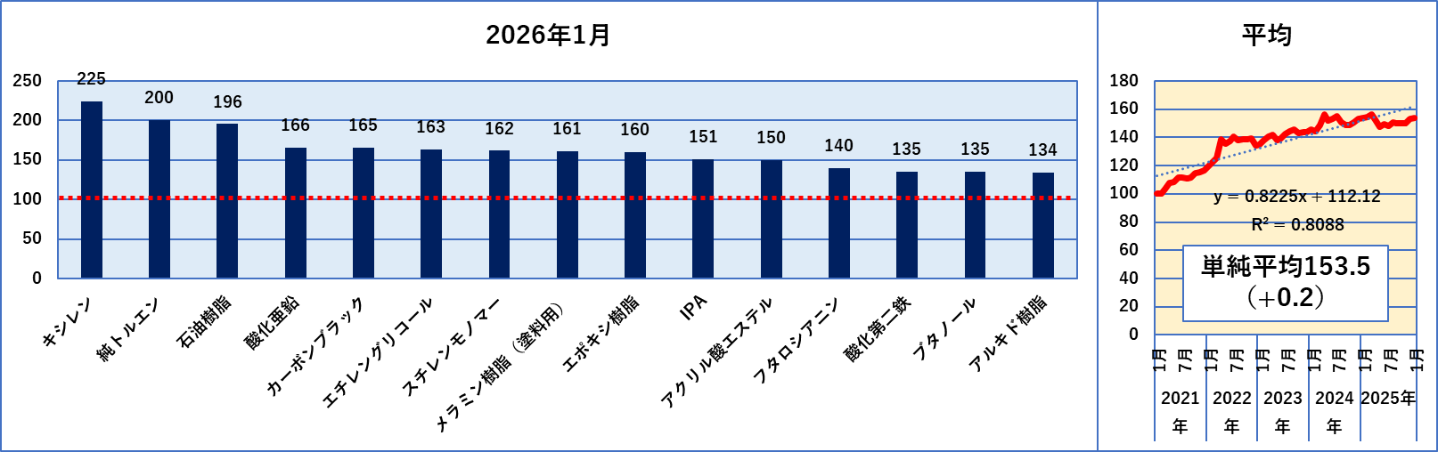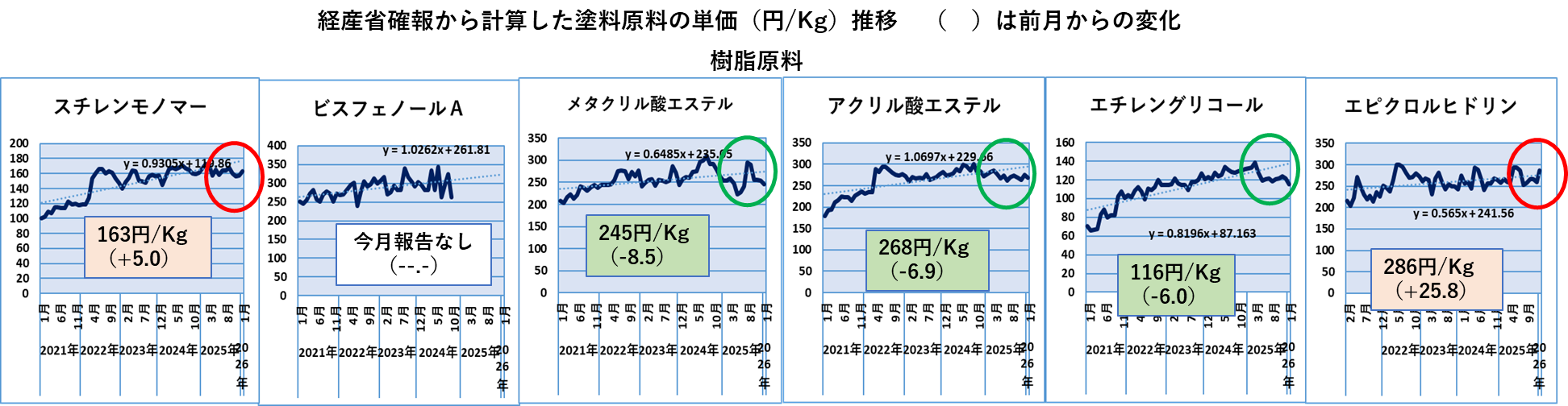 経産省確報に見る塗料原材料の単価動向・・2026年1月度