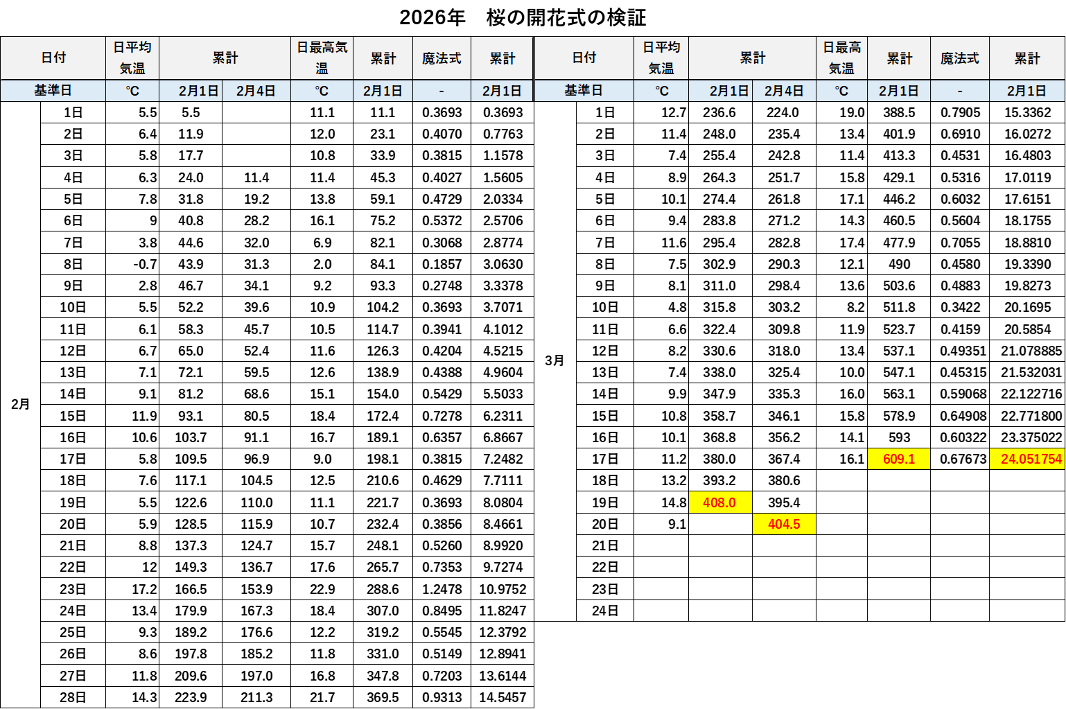 桜の開花メカニズムはそんなに単純ではないとは思いますので、来年以降も開花式の検証を継続していきたいと思います。