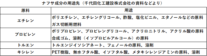 つまりナフサ留分のうちトルエン、キシレン以外のエチレン、プロピレンも有機溶剤の原料であるということです。さらにベンゼンも塗料にとって重要な基礎物質であるスチレンの原料であり、ナフサは塗料の原料にとって多くの原料の元となるものであることが改めて理解されると思います。